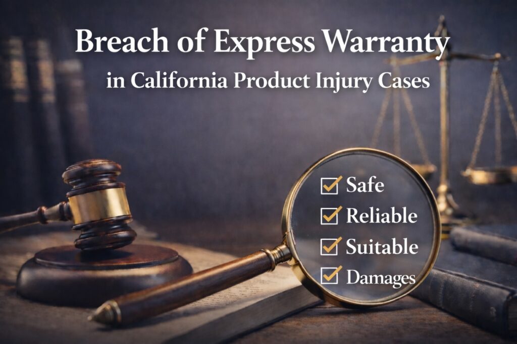 When a company affirmatively represents that a product is safe, reliable, or suitable for a particular use—and that representation turns out to be false—California law allows injured consumers to bring a breach of express warranty claim.