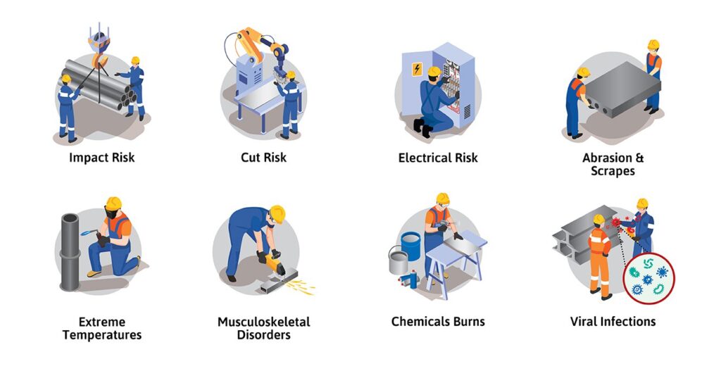 - Body-part entrapment risks, including how clothing, gloves, hair, or limbs can be pulled into moving components