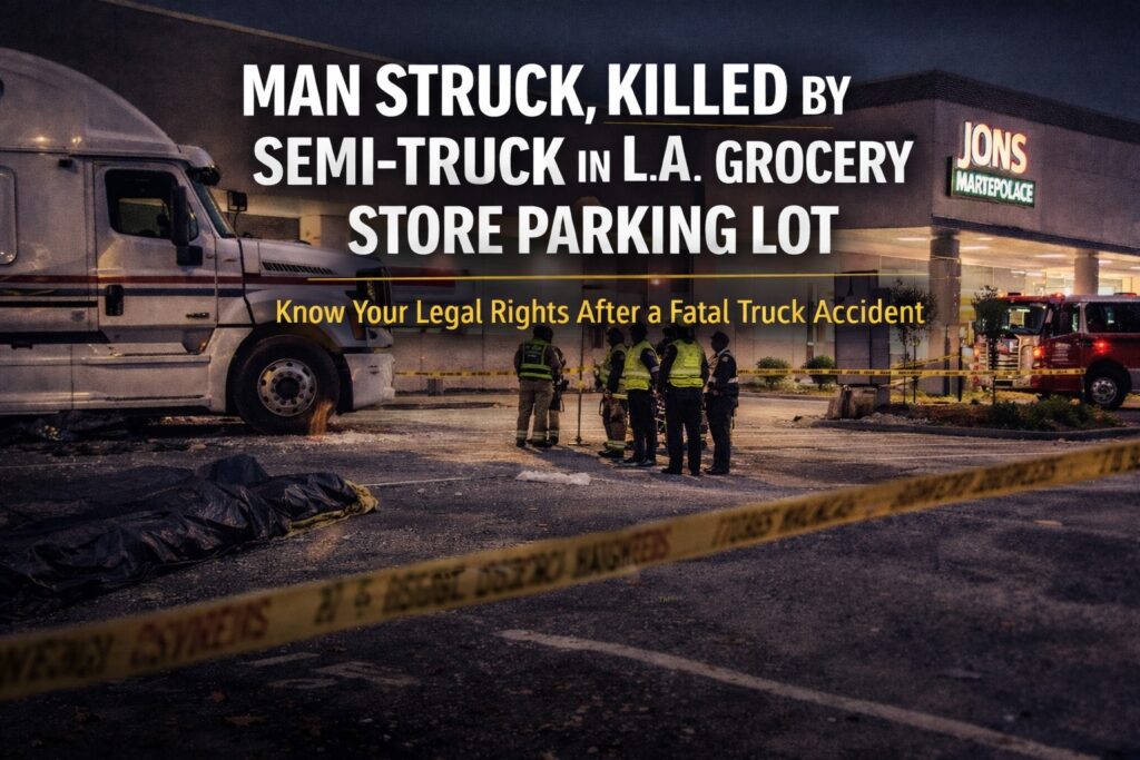 A tragic pedestrian accident occurred Thursday in Van Nuys, where a 55-year-old man was struck and killed by a semi-truck in the parking lot of a local grocery store. According to law enforcement authorities, the incident appears to be a preventable accident involving a commercial truck navigating through a crowded pedestrian area — a reminder of how dangerous truck movements can be in spaces where people walk or rest.